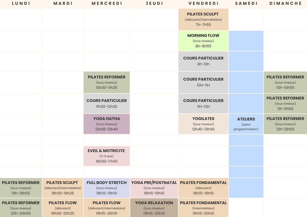 Pour les clients avec abonnement, vous pouvez réserver vos séances jusqu'à 1 mois à l'avance ! Vous pouvez annuler votre réservation jusqu'à 2h avant le début du cours. Au-delà, votre séance sera quand même décomptée.