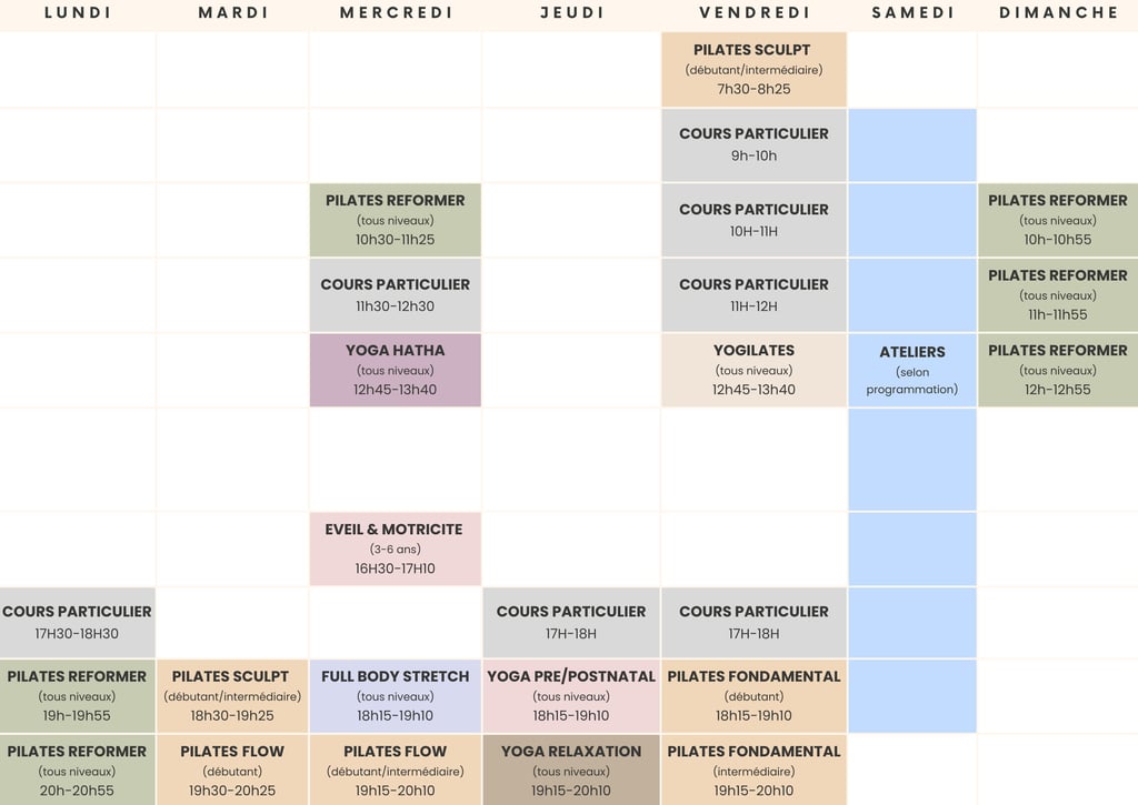 Merci de vous présenter à l'heure pour votre séance, en prévoyant le temps de ranger vos affaires dans les vestiaires et de vous installer. Prévoyez un petit cadenas pour les casiers ainsi qu'une serviette pour protéger les tapis de pratique.