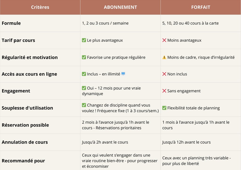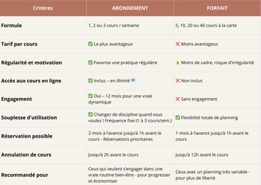 L’abonnement est idéal pour instaurer une pratique régulière, profiter d’un tarif avantageux, et accéder gratuitement à tous nos cours en ligne en illimité.
